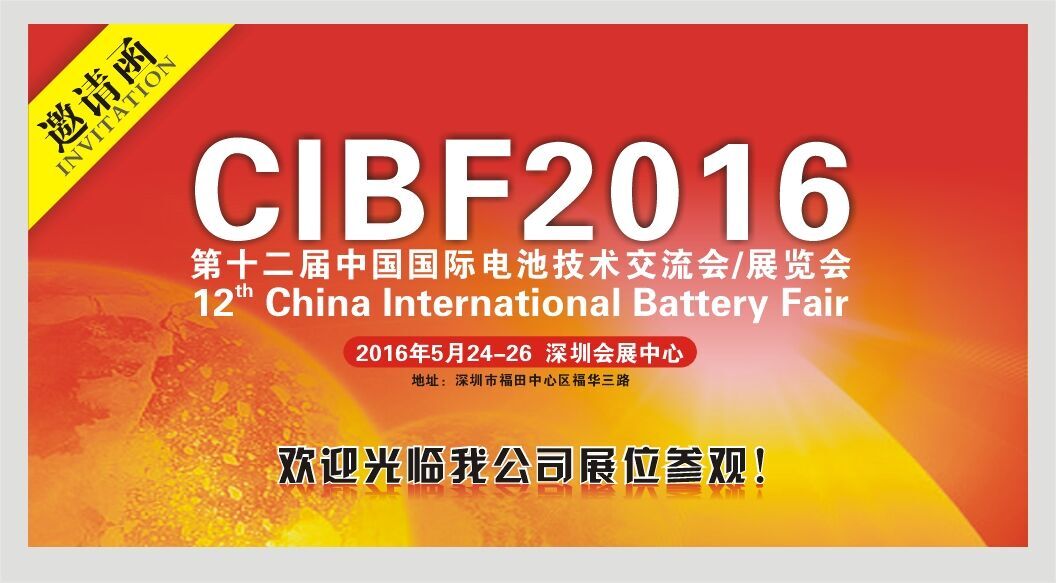? ? ? ?2016年5月24日-26日 ?第十二届中国国际电池技术交流会/展览会将在深圳市福田中心区福华三路,深圳会展中心召开,我司展位号:9F90号,欢迎广大新老客户,到我公司展位区域了解新产品和行业技术交流。