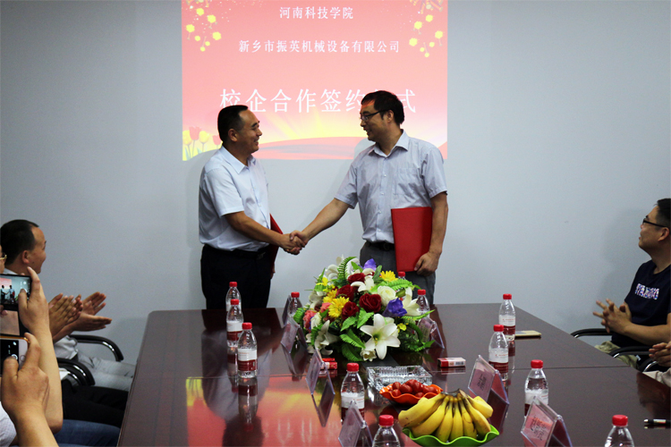 625新乡市振英机械设备有限公司、河南科技学院正式进行校企联合人才项目签约,并正式成立校企共同教学实习基地.
