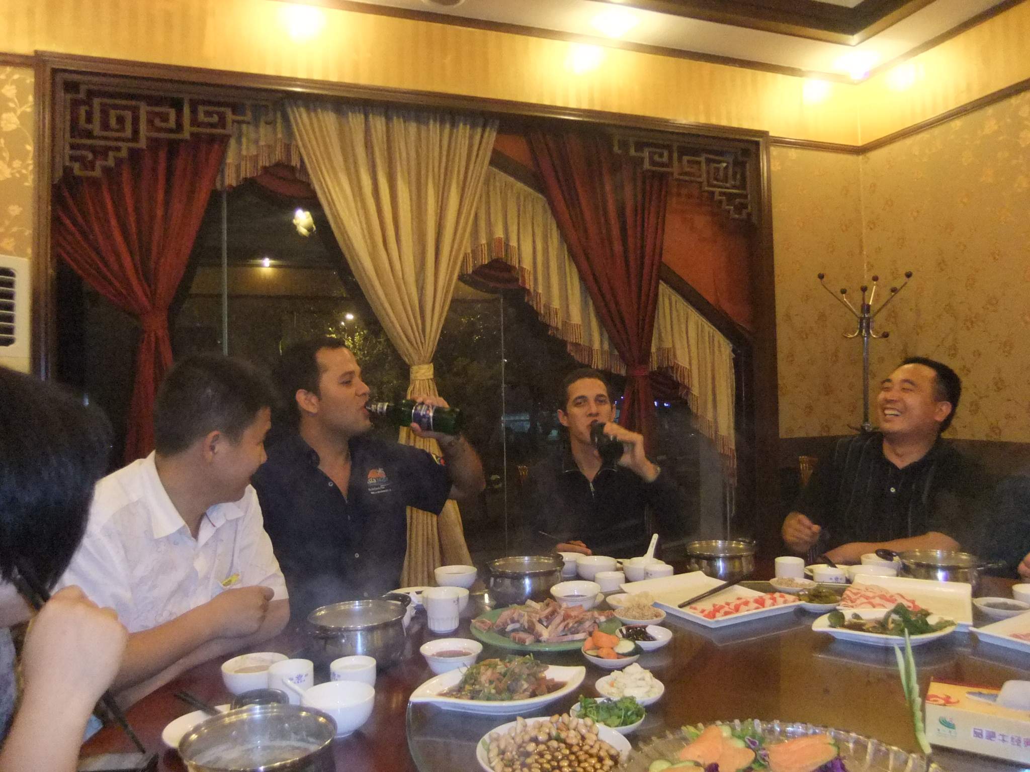??? 实验期间,物料筛分效果良好、筛分质量稳定,得到了来自大洋彼岸的朋友的称赞。晚上我们公司的工作人员和委内瑞拉的朋友畅饮狂欢,外国朋友学会了中国的“干杯”,而我们也知道了“沙路”(下图,委内瑞拉客户此行我公司很满意,迫不及待的“沙路”)